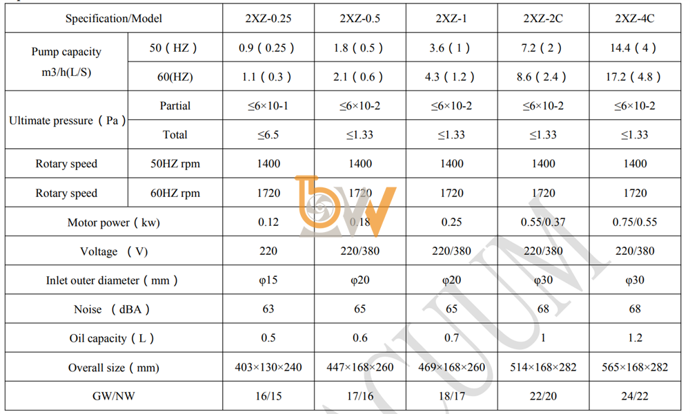 Bơm 2XZ-2 có: