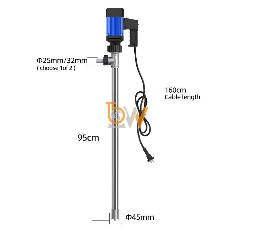 Nhờ đường kính thân bơm không quá lớn, JDT-600W-G260 phù hợp với hầu hết các loại thùng phuy công nghiệp. Người dùng chỉ cần thả bơm vào thùng mà không lo vướng, kẹt hoặc cần điều chỉnh phức tạp.