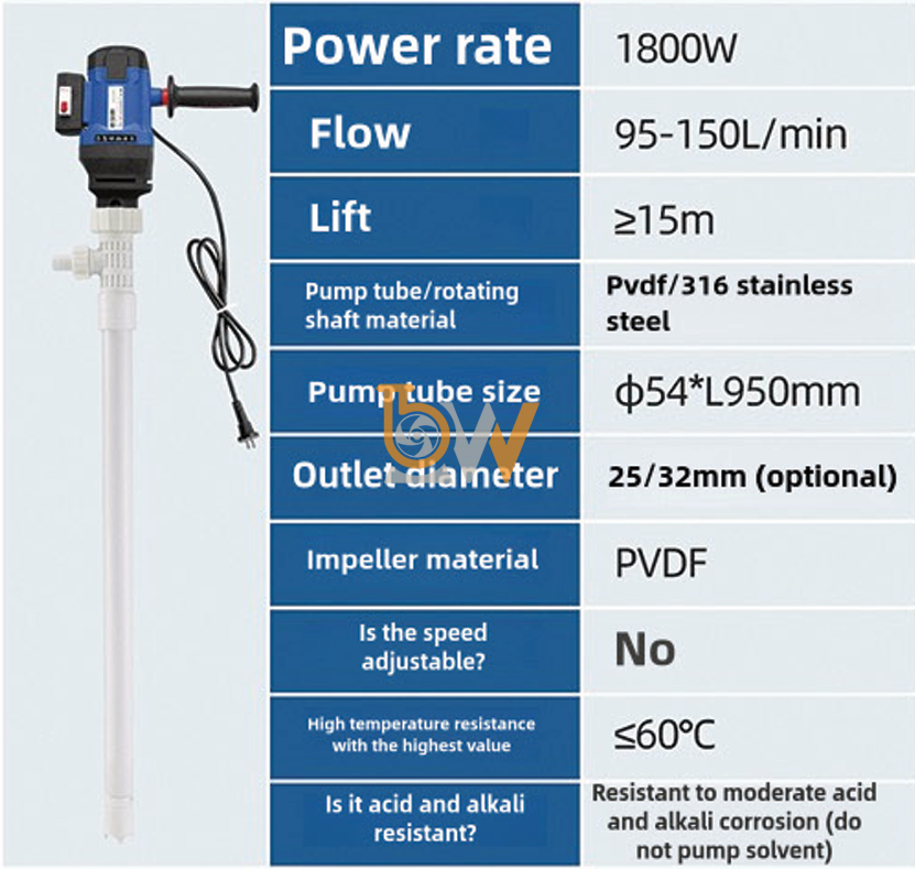 Tại sao nên chọn Máy bơm điện bơm chất lỏng thùng phuy JDT-1800W-PVDF cho axit