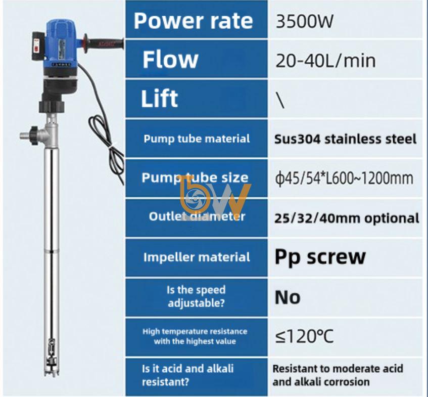 Máy bơm điện cầm tay hút thùng phuy JDT-3500W-LGG120 là một thiết bị cực kỳ hiệu quả trong việc chuyển đổi chất lỏng giữa các bồn chứa trong các ngành công nghiệp. Với công suất mạnh mẽ, thiết kế tiện dụng và tính linh hoạt, máy bơm này không chỉ giúp tăng cường hiệu quả bơm chất lỏng mà còn tiết kiệm thời gian và chi phí trong các quy trình sản xuất. Dưới đây là những điểm mạnh giúp máy bơm này hỗ trợ quá trình chuyển đổi chất lỏng giữa các bồn chứa: